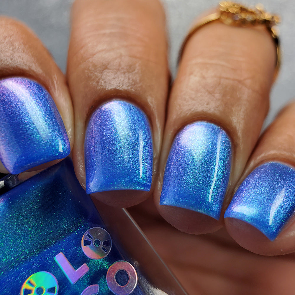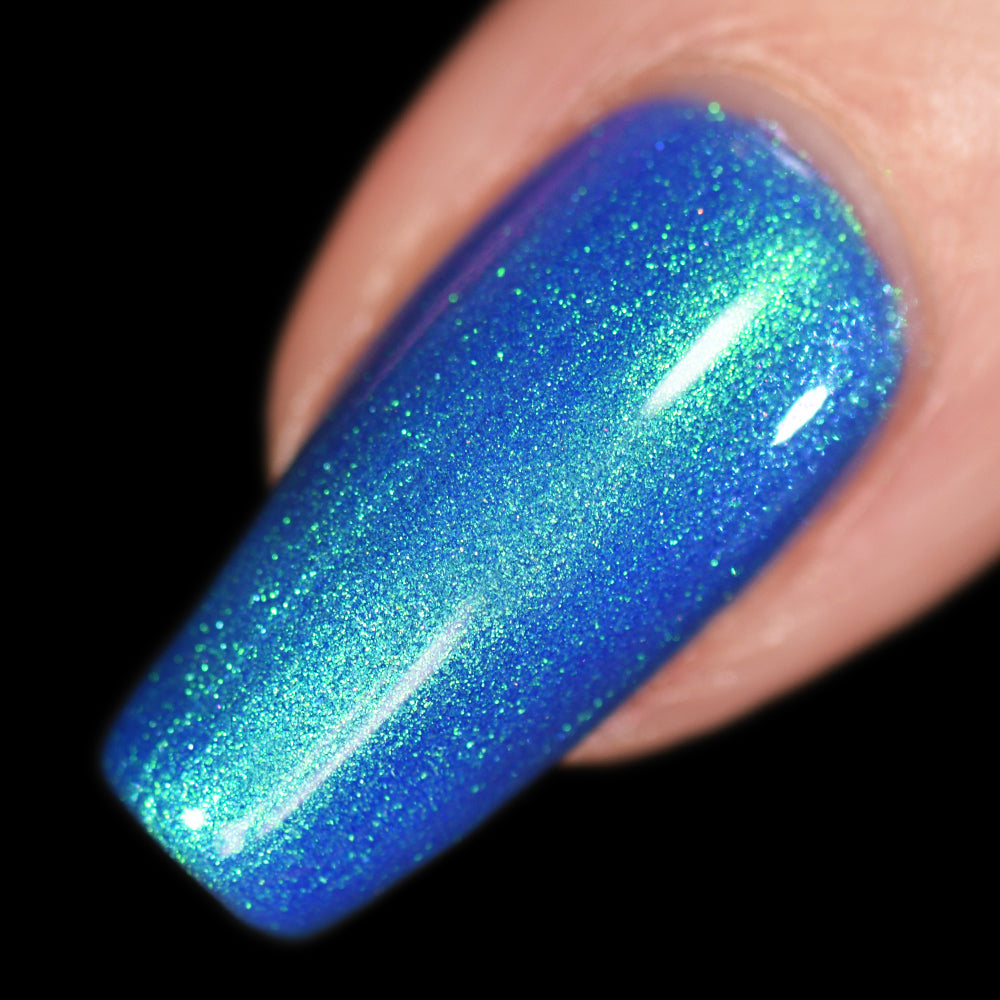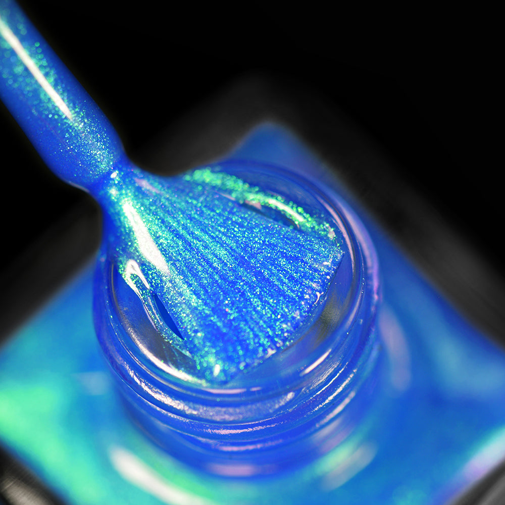 - Bright multichromatic formula that shifts between cobalt blue and turquoise.