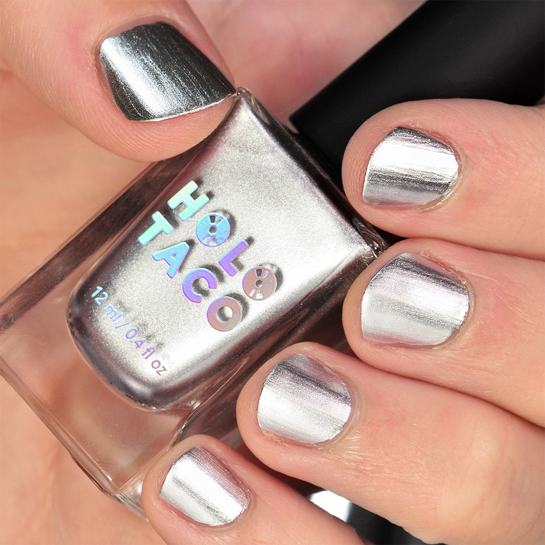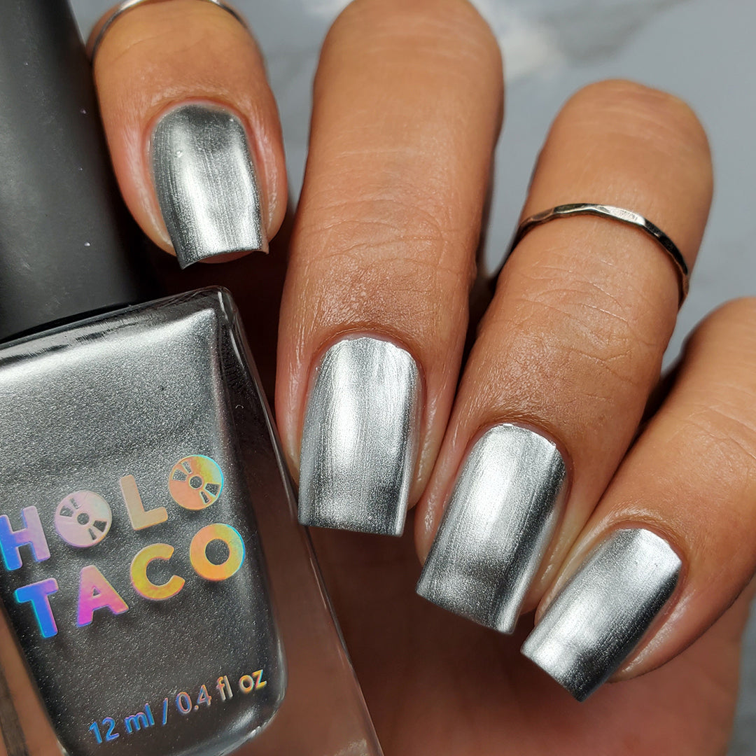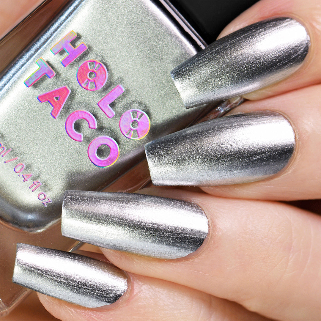 I love how it looked on me and I think it goes well with all skin tone. However it leaves obvious stroke line after apply, and clear taco cannot fix the problem. It's hard to give a cleaner look with smooth surface, even with smoothing base. This is a nail polish with metal look so I'm ok with that. Would be really fun if one day Holo Taco make an mirror-like nail polish!