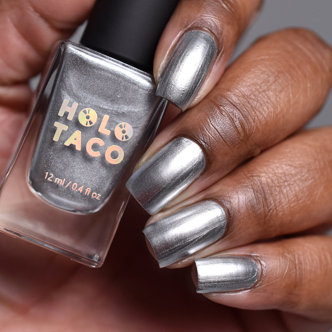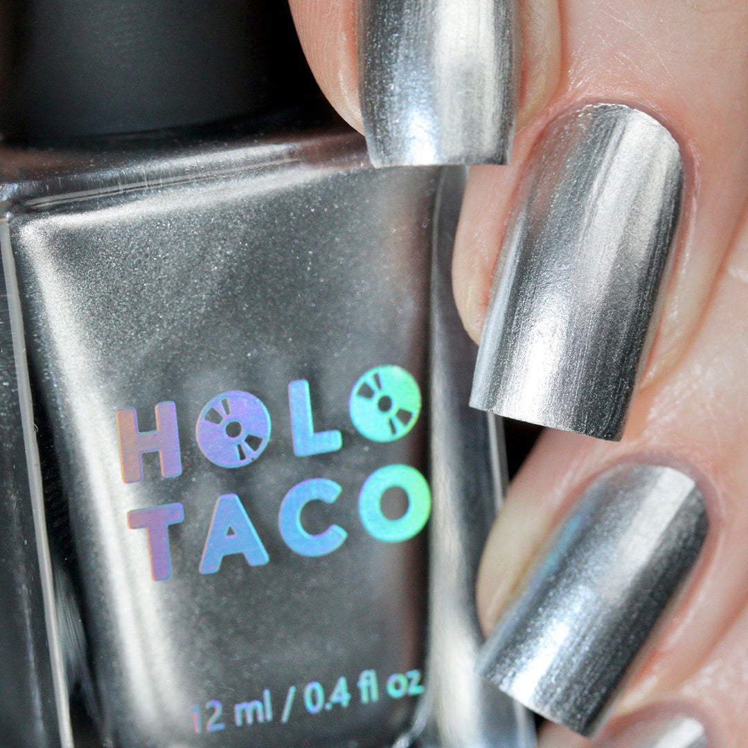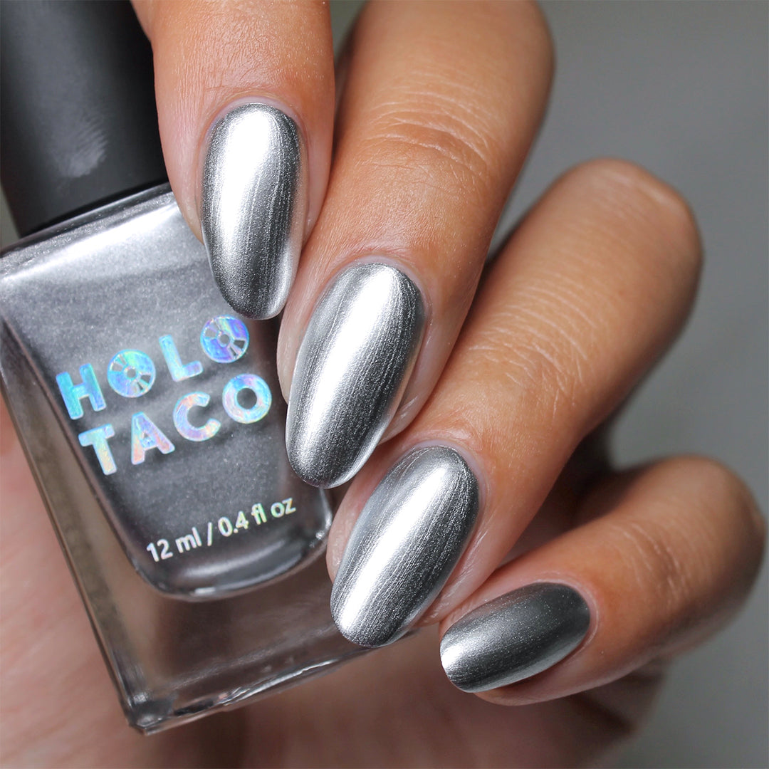 I love how it looked on me and I think it goes well with all skin tone. However it leaves obvious stroke line after apply, and clear taco cannot fix the problem. It's hard to give a cleaner look with smooth surface, even with smoothing base. This is a nail polish with metal look so I'm ok with that. Would be really fun if one day Holo Taco make an mirror-like nail polish!